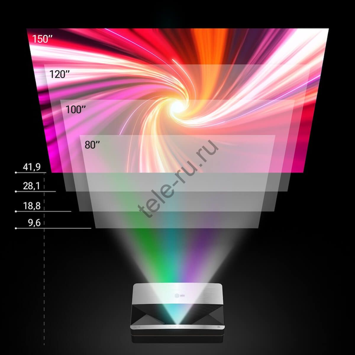 - Размер изображения от 80″ до 150″